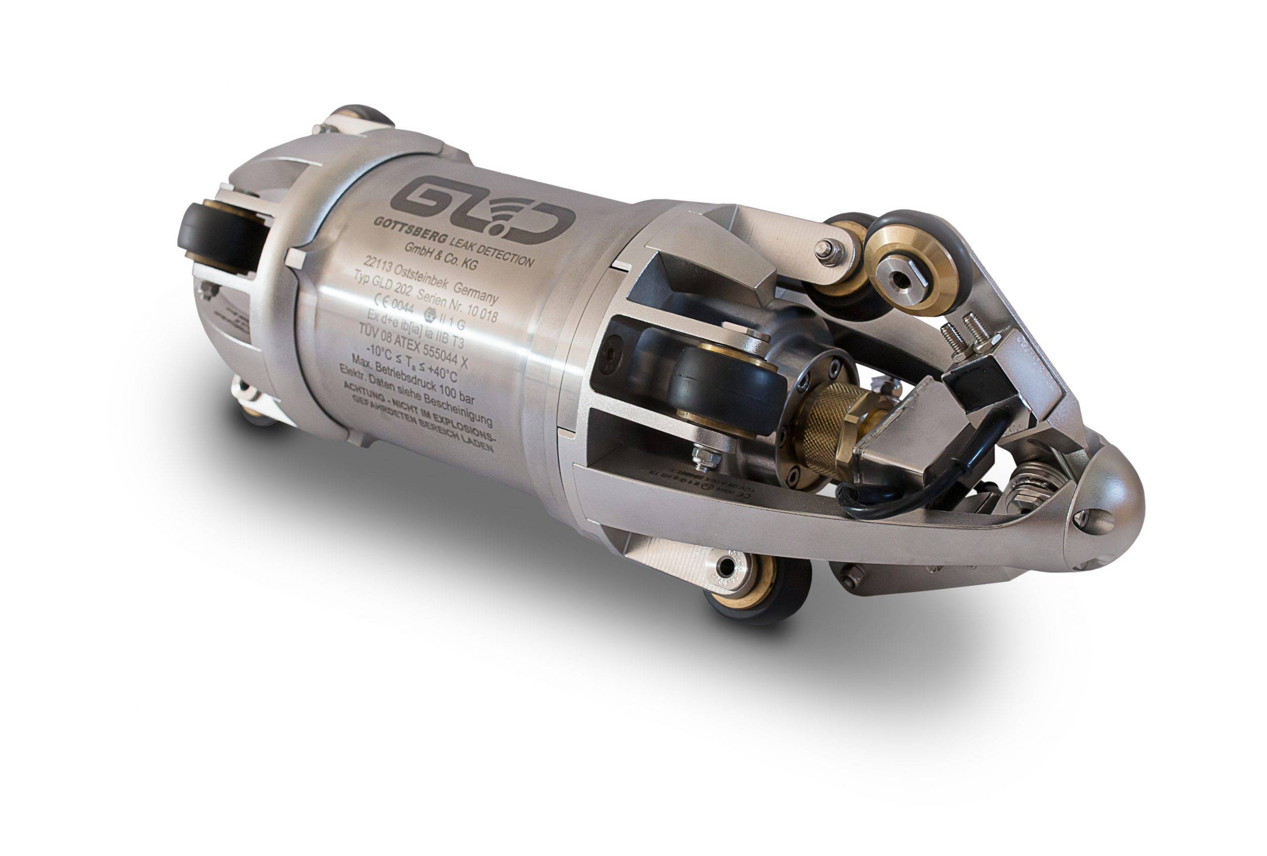 Fahrgestell für den GLD 20x, das speziell für die entsprechende Pipeline konstruiert wird. Es trägt den Leckdetektor und zentriert diesen in der Leitung. Angetriebenen wird es durch das verpumpte Medium und verfügt über ein integriertes Entfernungs- und Geschwindigkeitsmesssystem.