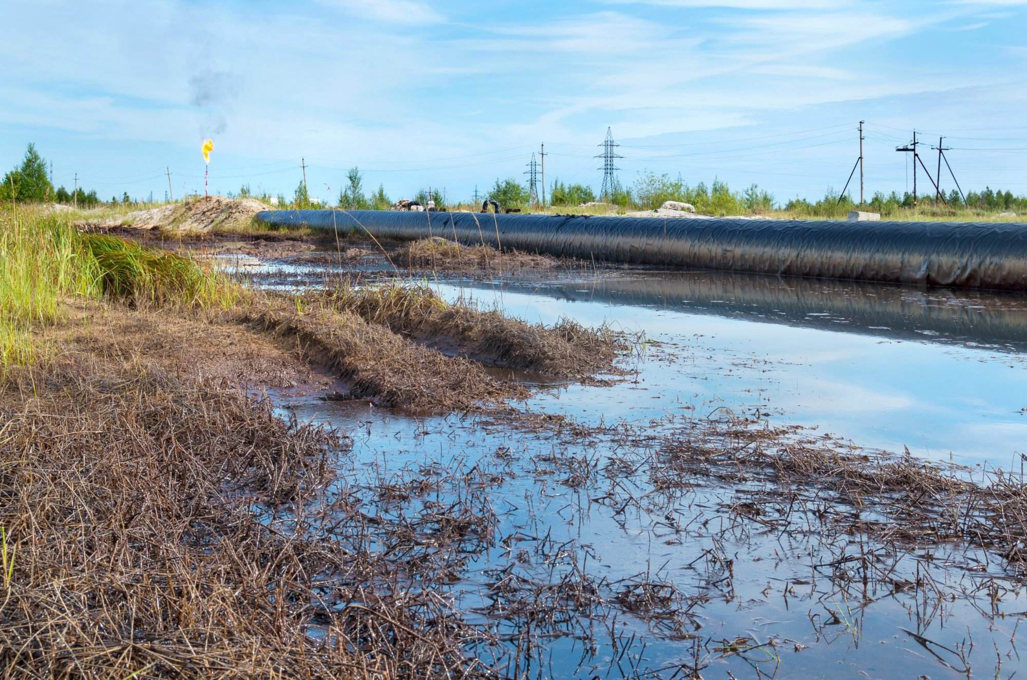 Kontaminierte Umwelt durch tausende Liter ausgetretenem Öl aus der Leckage einer Pipeline.